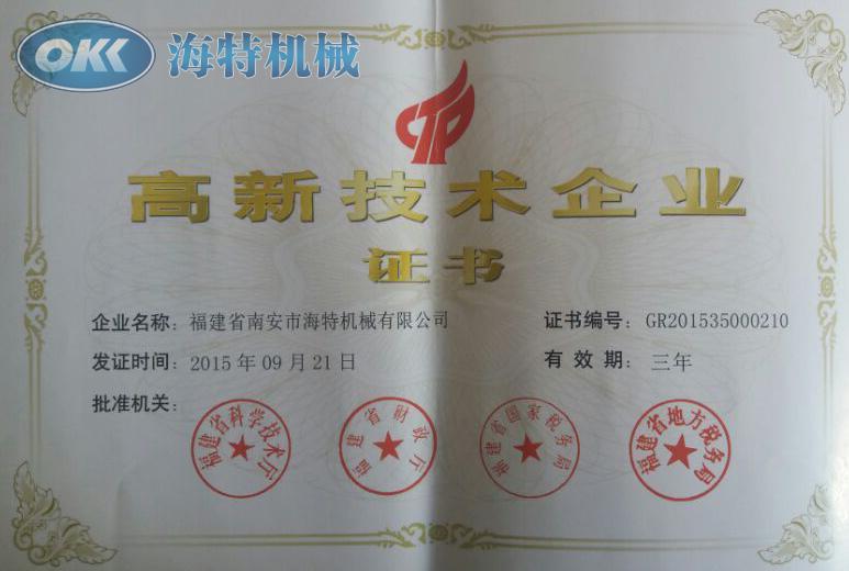 2015年榮獲福建省高新技術企業(yè)的認定